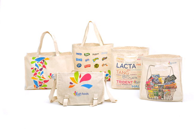Campanha da Kraftfoods Ecobags Produtos. Ao total foram produzidos 15 mil ecobags com modelagem exclusiva para cada pedido. O prazo curto de produção e a inovação nos modelos